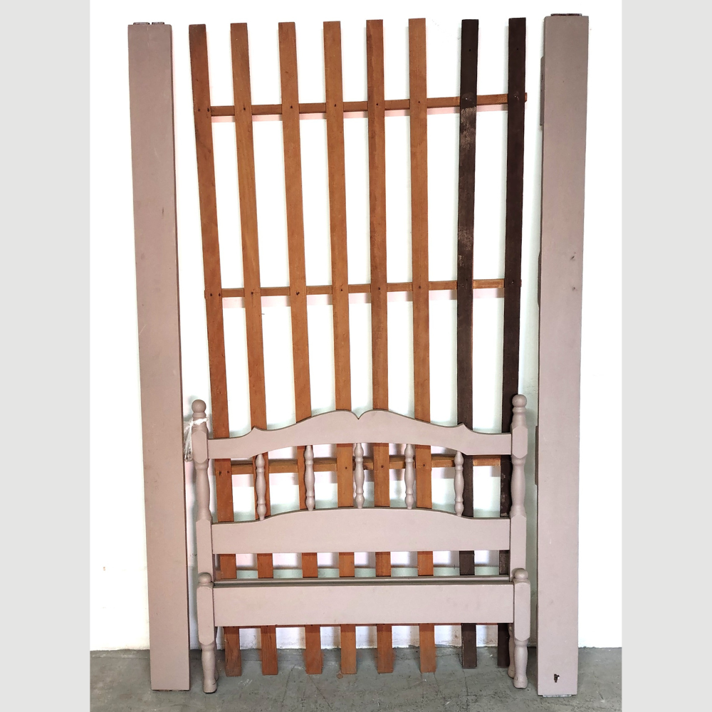 Cama de solteiro, madeira maciça Pintada cabeceira vazada.