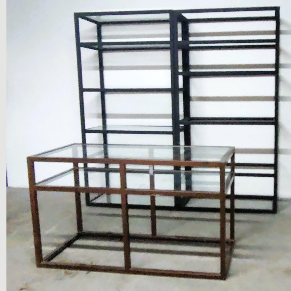 Conjunto de 3 Peças 02 Estante e 01 balcão (mesa expositora) estrutura de metalão com prateleiras de vidro 8mm