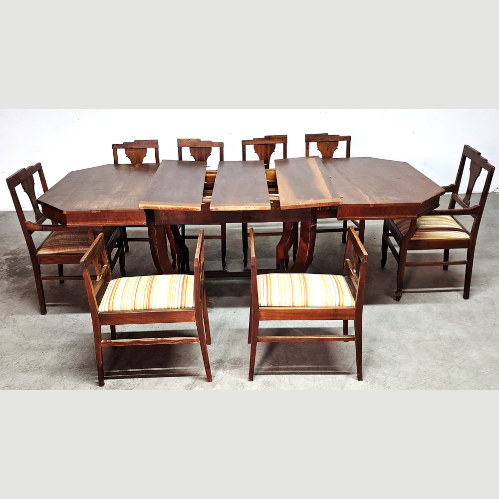 Conjunto de Mesa de Jantar Extensível em Madeira Nobre com seis Cadeiras, sendo duas com Braços mais duas Banquetas