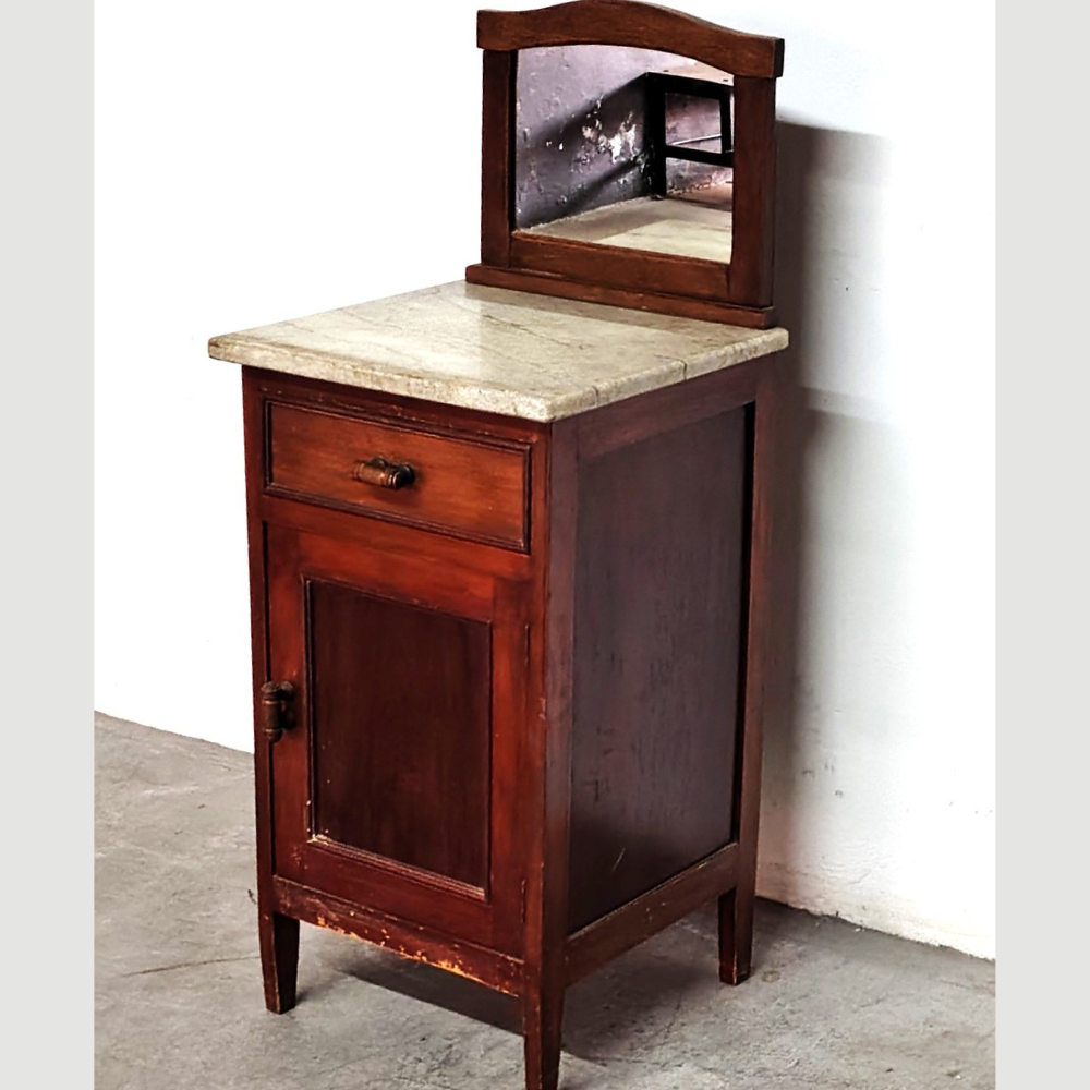 Criado Mudo Embuia com Gaveta, Espelho e Pedra de Mármore Madeira Maciça Antiguidade